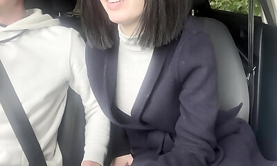 Lovely Japanese chick Ai Koda gives a fellatio in the van in broad daylight