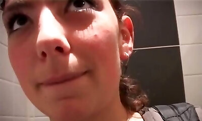 MIXED RESTROOM ADVENTURE: second part of the adventure, showcasing cock to the two bitches and truly huge pop-shot