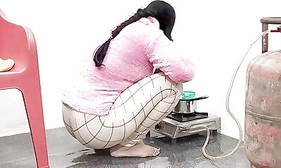 Part.1, indian sister in law cooking in kitchen and banging with stepbrother