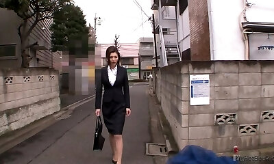 Japanese office bitch Aihara Miho is ready to be pounded by two dudes